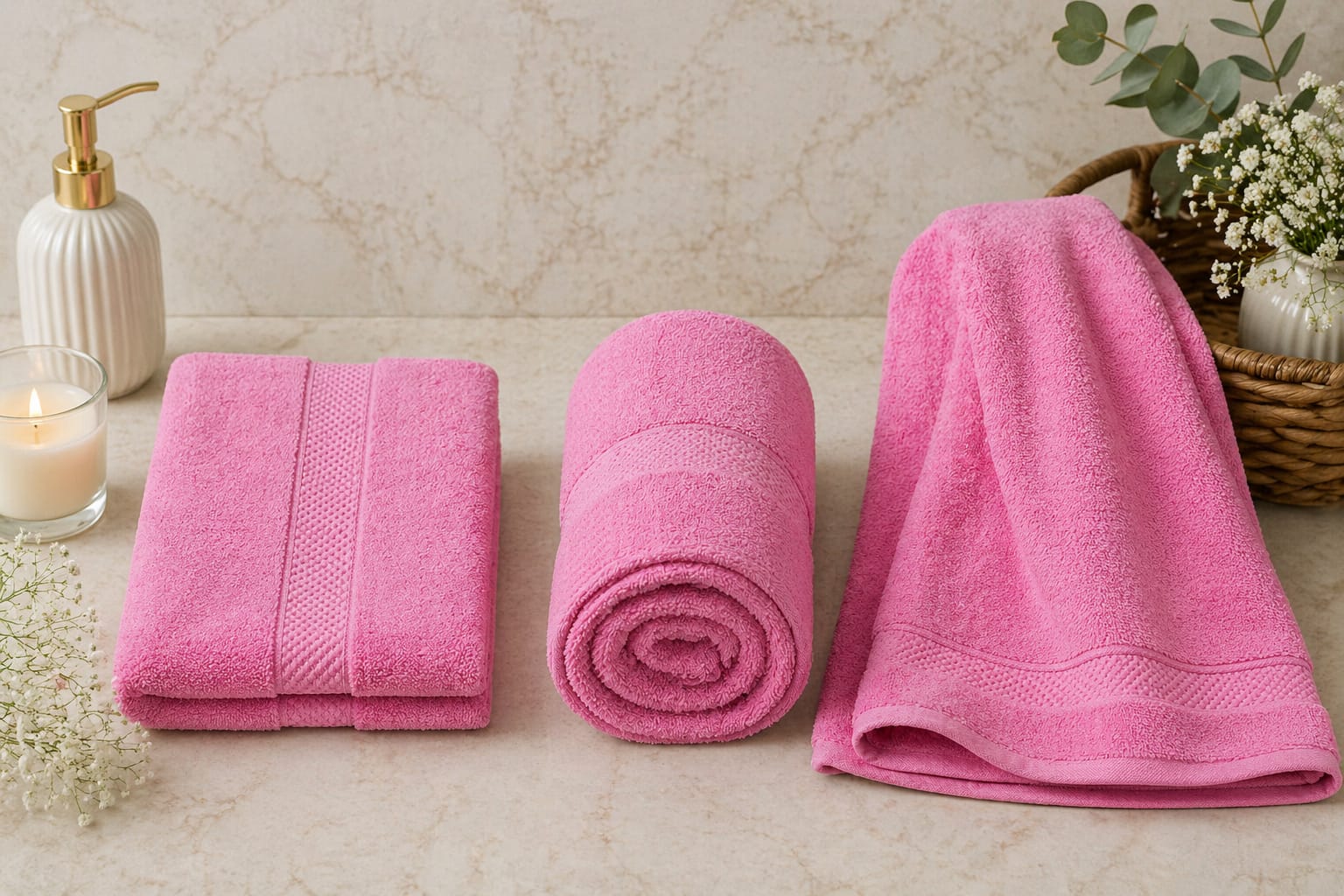 Experience everyday luxury with our premium pink cotton towel. Crafted from 100% high-quality cotton, this towel is designed for superior softness, durability, and absorbency. Its elegant pink shade adds a fresh and stylish touch to your bathroom décor.